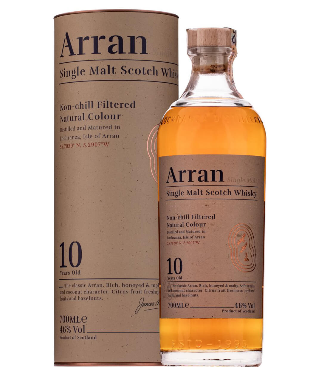 Klasická séria single malt whisky Arran 10y zahŕňa jedinečnú chuť krásneho škótskeho ostrova Arran. Arran sa radí medzi top producentov whisky zo Škótska a s týmto základným radom určite neurobíte krok zlým smerom.
