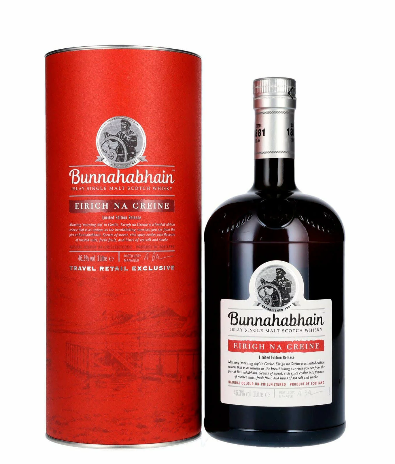Bunnahabhain Eirigh Na Greine je limitovaná edícia škótskej whisky s fantastickým charakterom. Táto jedinečná whisky bola vytvorená z rôznych sudov: najprv sa liehovina naliala do bývalého suda po bourbone, takže mladé arómy formovalo korenené drevo amerického bieleho dubu. Potom dozrievalo v sudoch po ex-červenom víne, ktoré sa používajú vo Francúzsku a Taliansku. Drevo ochutené červeným vínom je pri výrobe whisky pomerne vzácne, no dokonale prispelo k tomuto islayskému single maltu.
