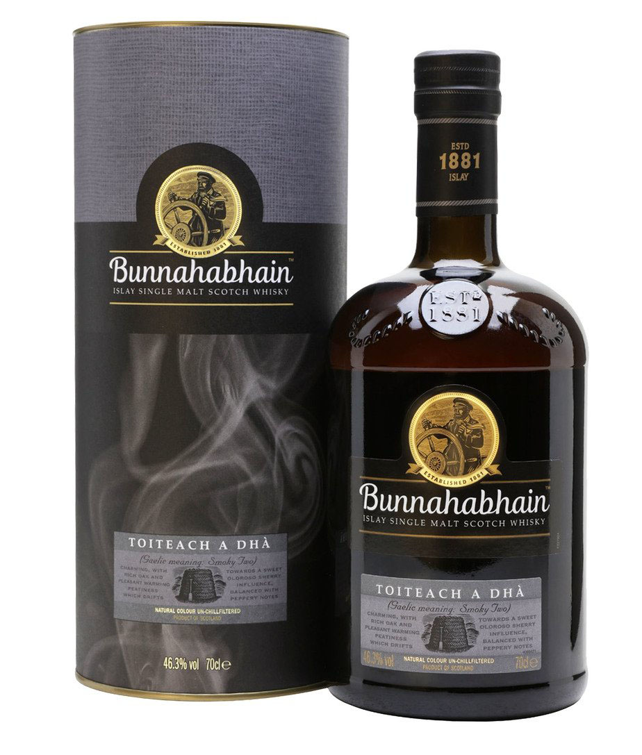 Každý, kto sa už zaoberal sortimentom Bunnahabhain, si určite všimol, že už existoval Toiteach v bielej tube. Pretože Toiteach A Dhà je logickým pokračovaním tejto dymovej série Islay, keďže názov tiež znamená “Smoky No.2”. Tentokrát je tu však vyšší podiel sherry, ktoré Senior Master Blender Kirstie McCallum spojila do celku Toiteach A Dha. Hotové výrobky sa vyberali zo sudov po bourbone a po sherry.