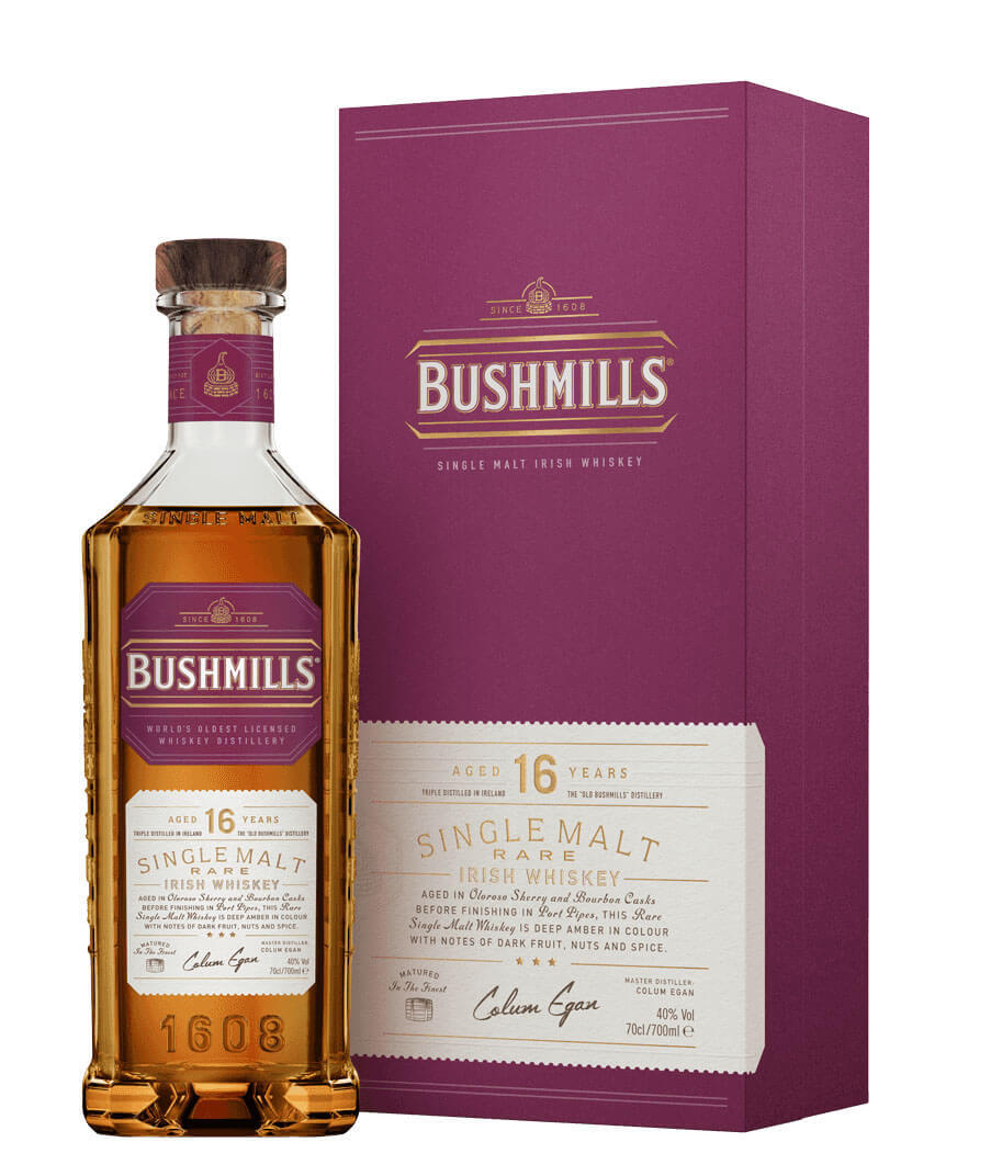 Táto elegantná sladová whisky dozrieva v troch typoch dubových sudov. V prvom rade v sudoch po americkom bourbone a Oloroso sudoch po sherry po dobu najmenej šestnástich rokov. Potom je zrenie zavŕšené v píšťalách po portskom víne, kde získava nádych rubínovej farby a sladký záver. Bushmills 16 Year Old Single Malt získal zlatú medailu na San Francisco World Spirits Competition 2003.