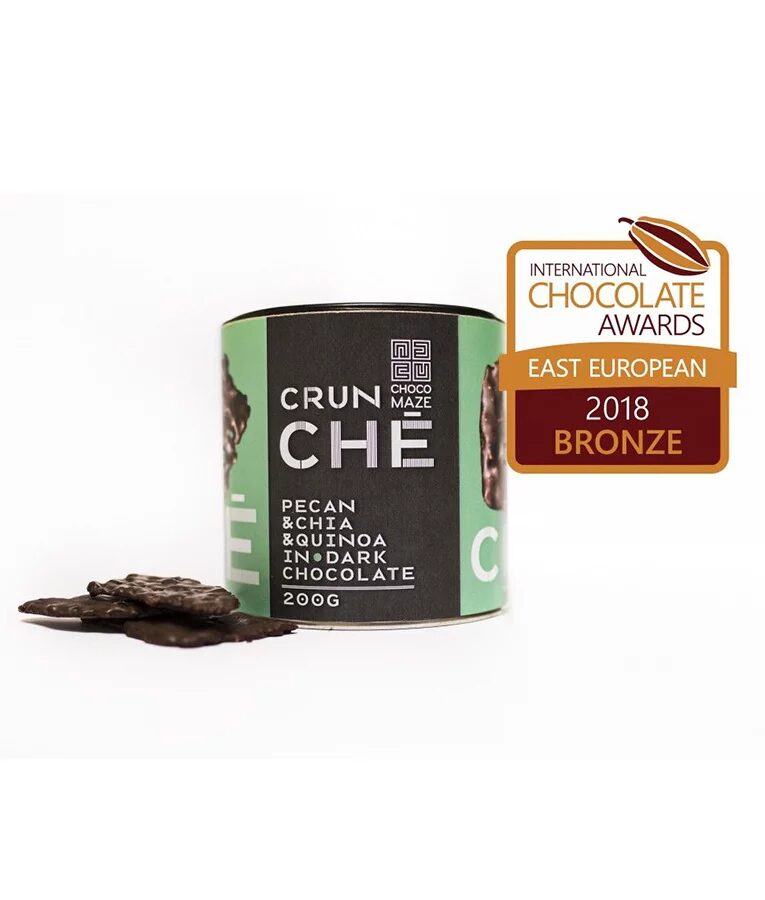 Hľadáte sladké potešenie, ktoré si môžete vychutnať pri sledovaní obľúbeného seriálu? Vyskúšajte Chocomaze Crunche Pekan, ktorá je karamelizovaná chrumkavá vrstva s praženými orechmi, kokosom, chia semienkami a quinoou v horkej čokoláde. Tento dezert bol ocenený bronzovou medailou na súťaži International Chocolate Awards a neobsahuje lepok ani laktózu, takže je vhodný aj pre vegánov.