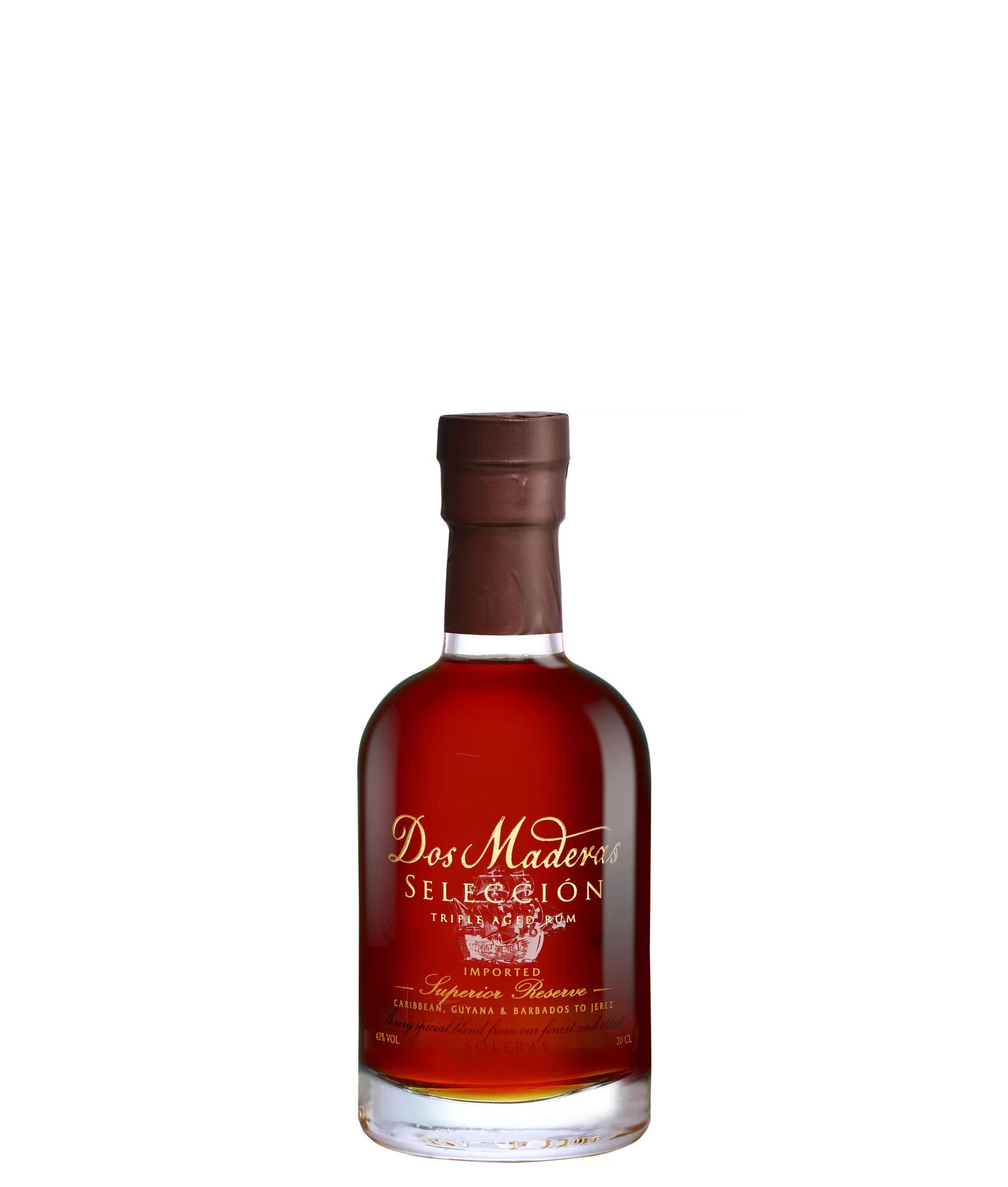 Novinka Dos Maderas Selección vzniká zmiešaním prémiového rumu Dos Maderas 5 + 5 PX s tými najlepšími desaťročnými rumami z Barbadosu a Guyany. Vďaka tomu sa Vám najprv na poschodí rozvinie suchá chuť 10 ročného karibského rumu, ktorá pozvoľna prechádza v jemné, sladké tóny po sherry Pedro Ximenez. Vyšší obsah alkoholu 42% podtrhuje rumový charakter Dos Maderas Selección, ktorý si aj napriek tomu v závere zachováva plnú a harmonickú chuť.