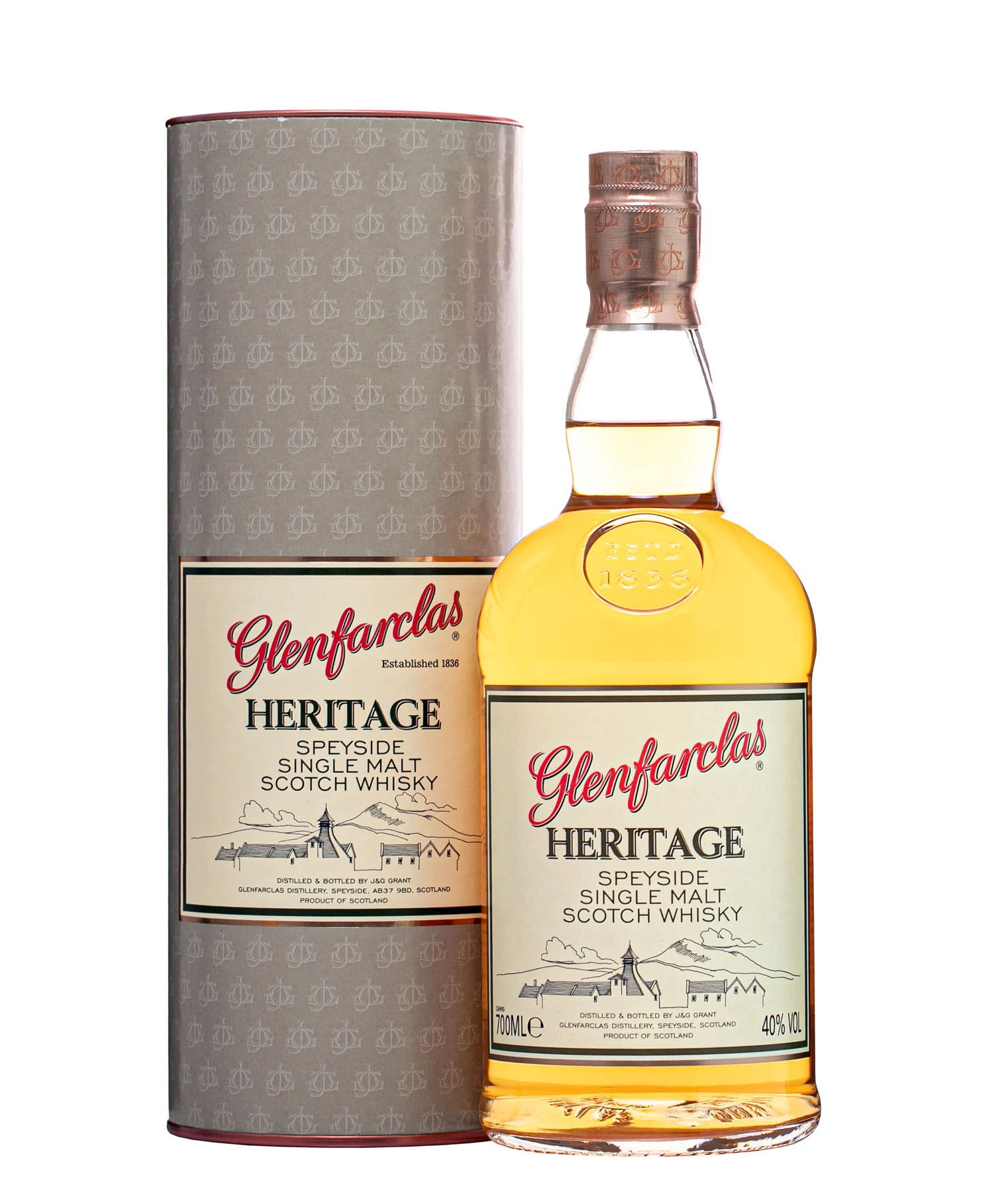 Liehovar bol založený v roku 1836. Odvtedy značka Glenfarclas priniesla na trh pozoruhodnú škálu špeciálnych fliaš. Glenfarclas Heritage je súčasťou radu Heritage liehovaru. Jeho vôňa je poctivá, mohutná, kvetinová, ovocná, sladká, vanilková, dymová. Chuť je príjemná, plná, okrúhla, ovocná, sladká, kvetinová, oriešková. Jeho povrchová úprava je dlhotrvajúca.