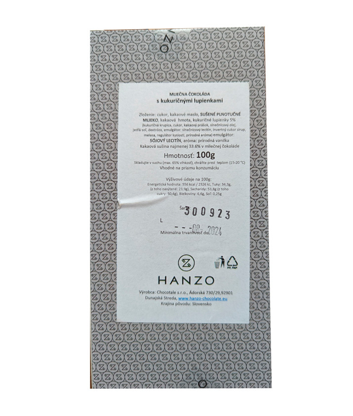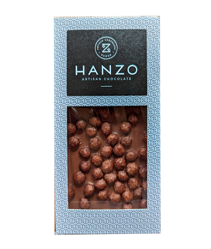 HANZO Remeselná Cruncher čokoláda ponúka jedinečný zážitok s kukuričnými lupienkami. Každý kus je dielom remeselného majstrovstva, kombinujúceho chrumkavosť a hladkosť mliečnej čokolády. Ochutnajte a nechajte sa unášať jedinečným svetom HANZO čokolády.