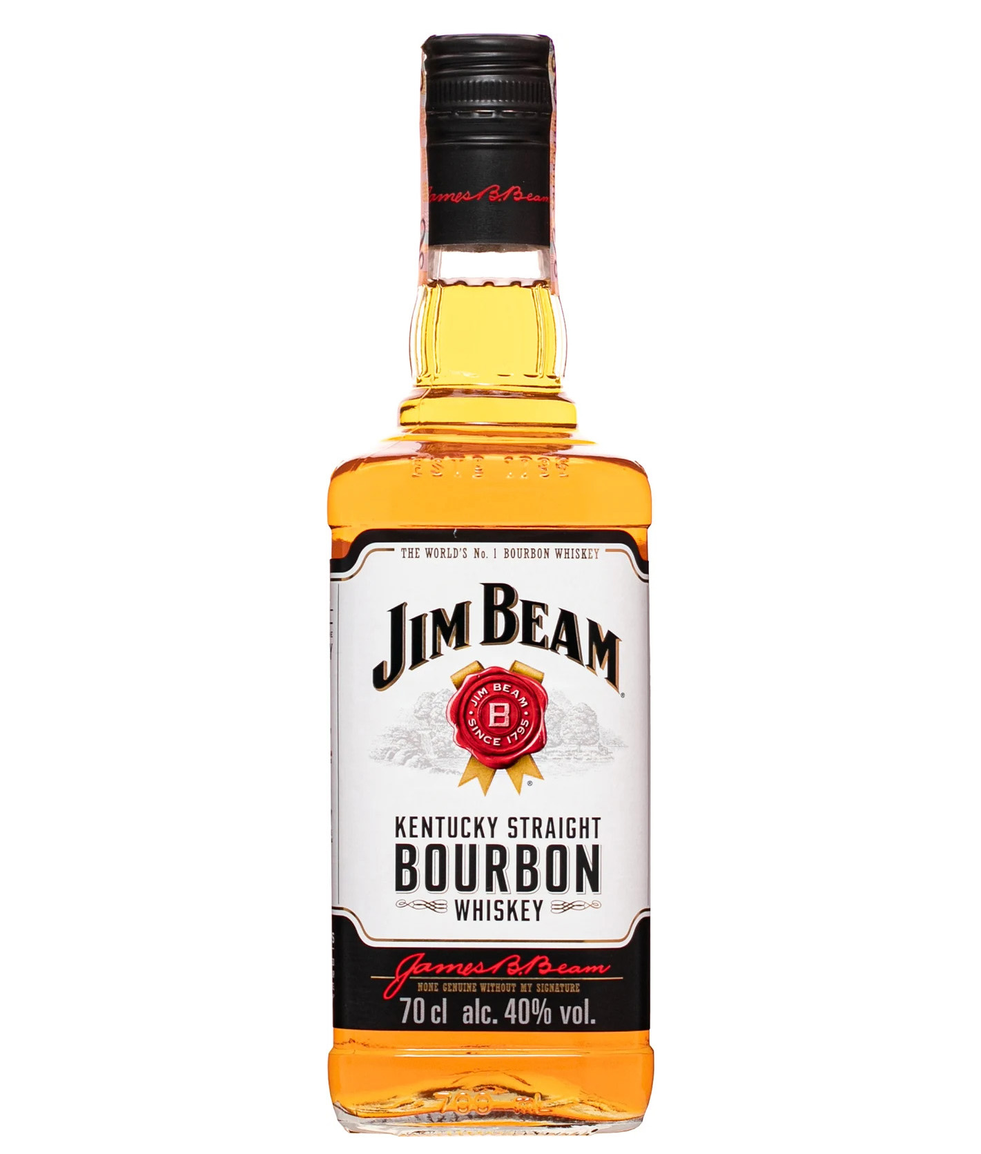 Jim Beam, najpopulárnejší a najpredávanejší bourbon na celom svete. Je rafinovaný, no zároveň jemný, hladký a elegantný. Prechádza destiláciou pri nízkych teplotách a obsahuje raž, kukuricu a sladový jačmeň. Zreje v čerstvo vypálených sudoch z bieleho amerického dubu po dobu 4 rokov. Vďaka týmto skutočnostiam získal jemne pikantnú chuť s tónmi dubu, vanilky, ovocia a korenia. Jim Beam White Label je zároveň vlajkovou loďou značky a vyrába sa podľa originálneho rodinného receptu už od roku 1795. Po dozretí sa Jim Beam Bourbon plní do estetických fľiaš s bielo-čiernou etiketou. Odporúčame podávať s kockami ľadu.