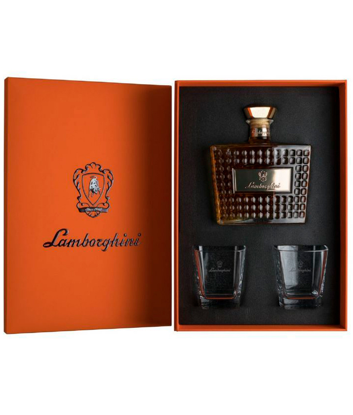 The luxury gift pack contains 2 Lamborghini brandy glasses.