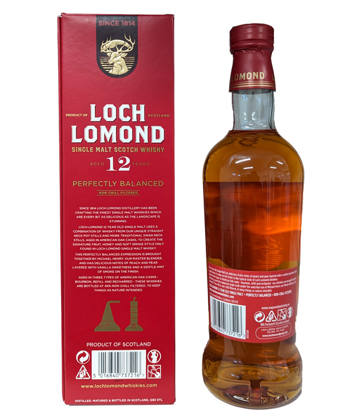 Loch Lochmond 12yo je jemne rašelinový single malt priamo zo Škótska v elegantnej fľaši v minimalistickom štýle. Whisky dozrieva v troch druhoch amerických dubových sudoch – po bourbone, po whisky a špeciálne vypálených. Ideálna pre milovníkov silnejších destilátov. Rozhodne stojí za pozornosť.