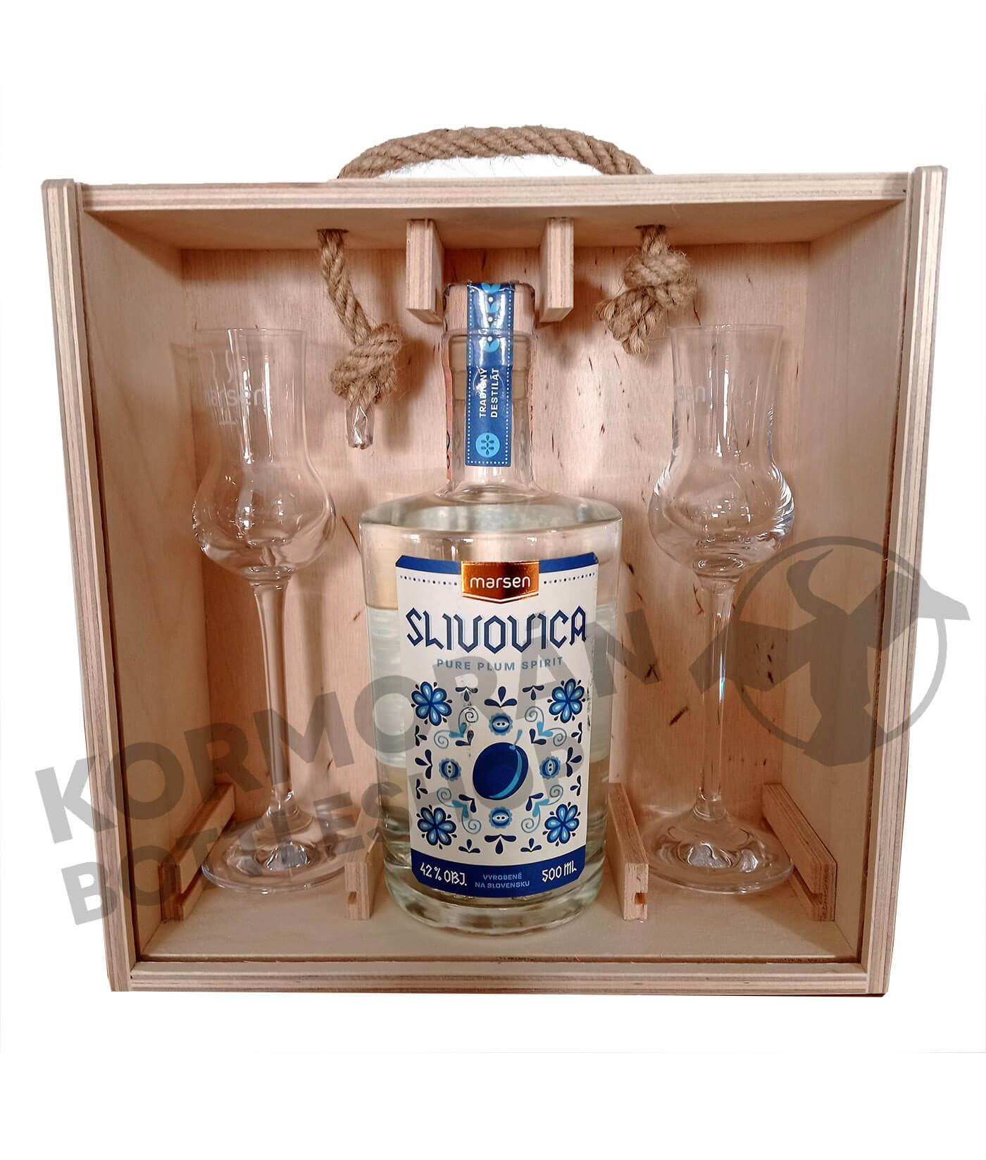 V tomto špeciálnom darčekovom balení teraz k fľaške Slivovice pridávame dva poháre, vďaka čomu bude okamih ochutnávky nezabudnuteľný. Drevená škatuľka vyzdvihuje výnimočnosť tejto kolekcie. Balenie môže byť skvelým darčekom pre vašich blízkych.