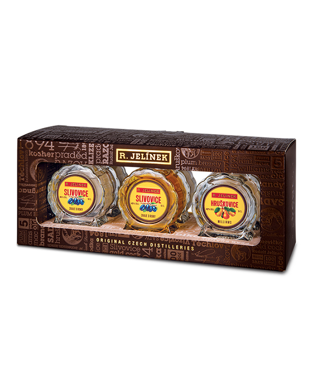 Táto darčeková súprava obsahuje 6 miniatúr ovocných destilátov – bielu slivovicu, zlatú slivovicu, jablkovú pálenku, marhuľu a čerešňu. Každá fľaša má objem 0,05 l.