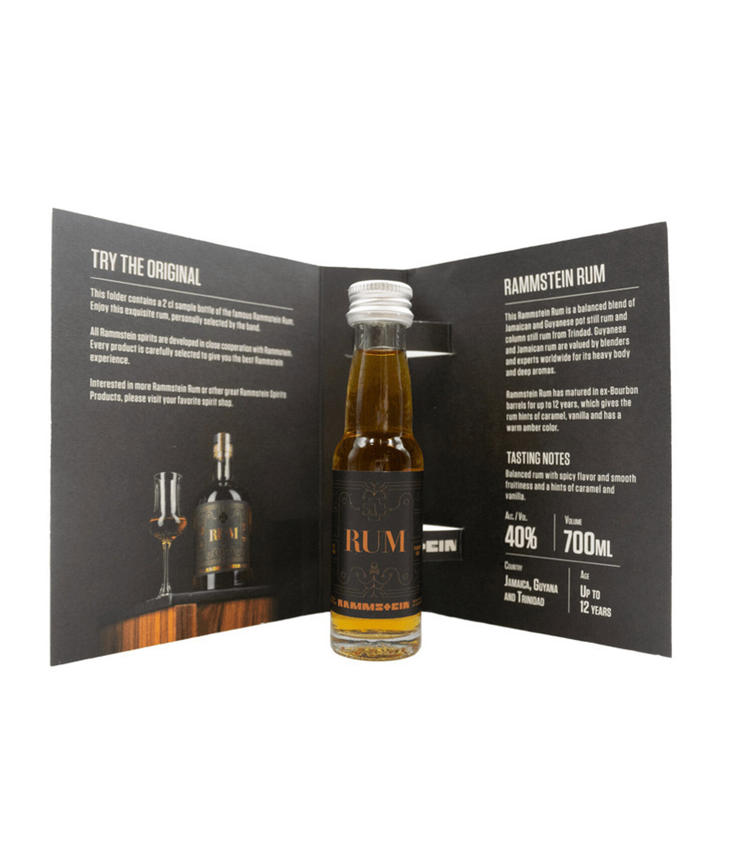 Rum Rammstein je dokonalé priateľstvo medzi Jamajkou, Trinidadom a Guyanou. Kombináciou tradičného Pot Still Rumu s klasickým Column Still Rumom získame dokonale vyváženú zmes silnej arómy a jemnej chuti. Jedinečná zmes tropických rumov, ktorá zreje 12 rokov a prenesie vás na piesočnaté pláže Karibiku.