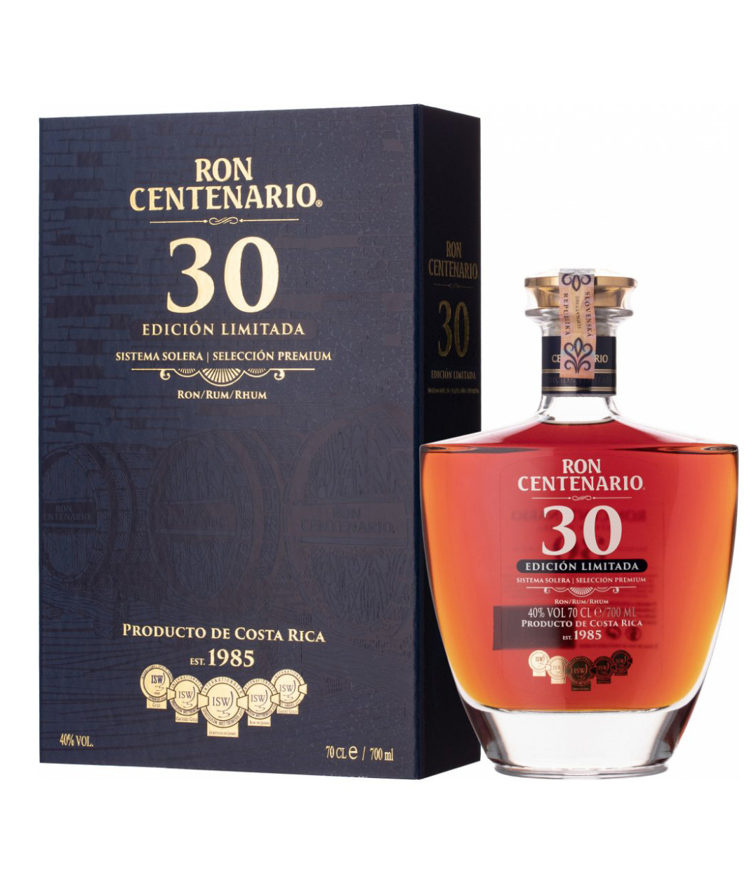 Najlepší rum planéty – aj týmto titulom sa môže pýšiť tmavý rum Centenario 30 Anos. Unikátna zmes, ktorá zrela tridsať rokov systémom Solera ponúka dokonalú súhru chuti, vône a farby. Nie nadarmo sa mu hovorí umelecké dielo medzi rumami. Liehovar Centenario Internacional vznikol v roku 1969 a rum Centenario 30 Anos vznikol systémom Solera z rumov, z ktorých časť je stará tridsať i viac rokov. Ide tak o naozaj prémiový produkt – o rumovou zmes z tých úplne najstarších sudov, ktoré tento kostarický liehovar vo svojich zásobách má.