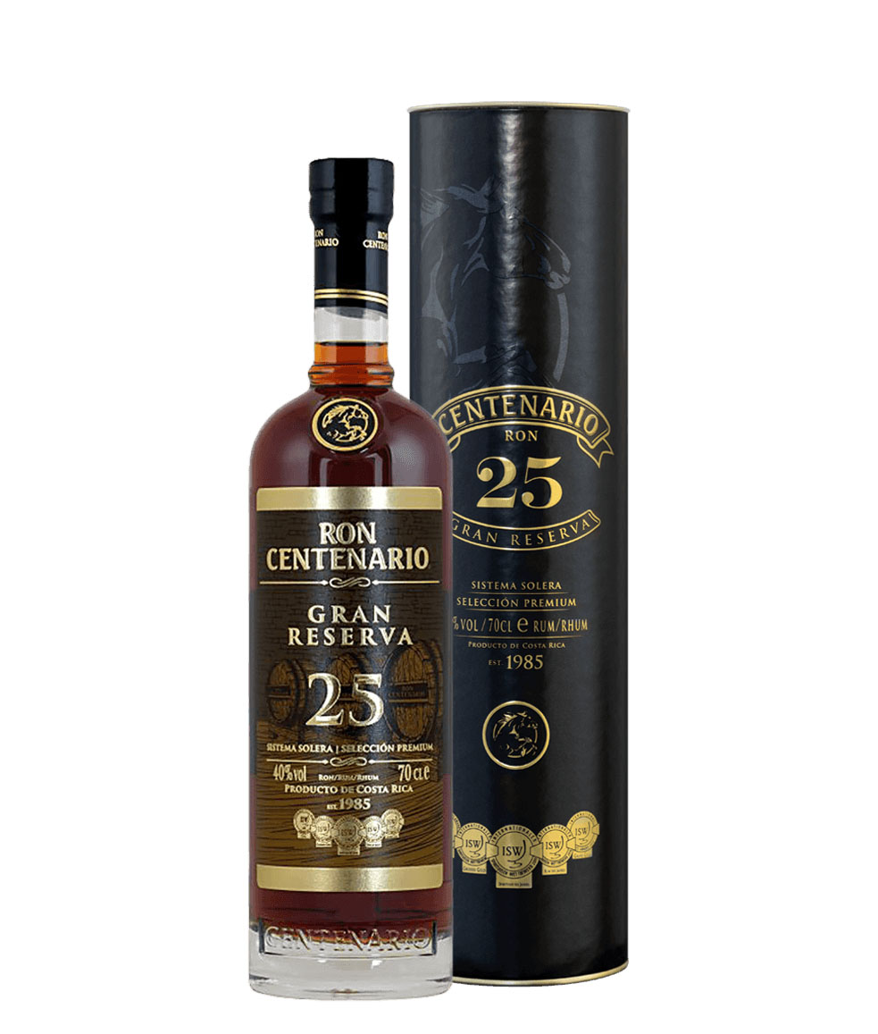 Vynikajúca kombinácia vnemov na všetkých úrovniach. Centenario Conmemorativo 25 y. je zmes jemných rumov zrejúcich v menších sudoch z bieleho duba po dobu minimálne 25 rokov, počas ktorej rum získa svoju jedinečnú a nezameniteľnú chuť. Jeho ušľachtilosť a kvalita daná tradičnou výrobou robí z tohto rumu jeden z najobľúbenejších v danej kategórii. Centenario pochádza z Kostariky, kde sa tešia neotrasiteľné pozície jednotky na trhu.