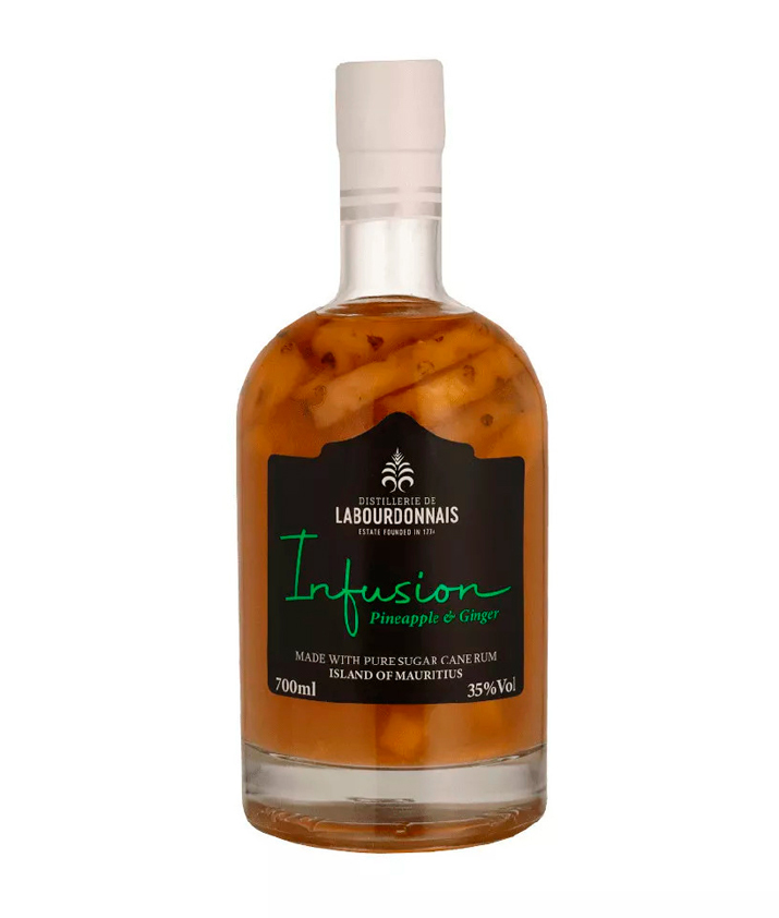 Indulge in a moment of relaxation and escape with Labourdonnais Infusion Pineapple & Ginger Rum, an artisanal creation that subtly blends tradition and innovation to offer you an unforgettable taste experience.