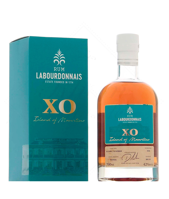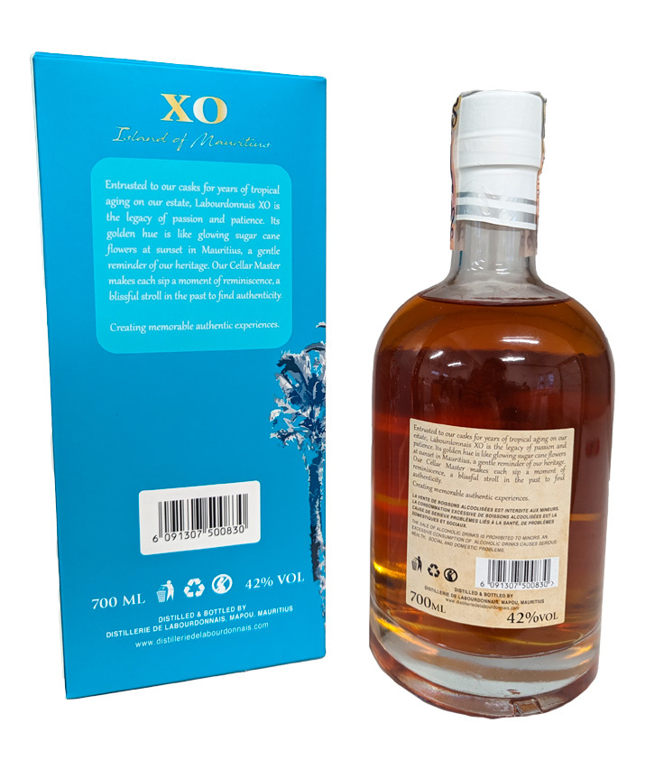Labourdonnais XO is a pure cane juice rum produced in the Mauritian distillery of Mapou. It is the result of a blend of rums distilled on stills and matured for 6 to 9 years in oak cognac and bourbon casks. It is bottled on site without cold filtration.