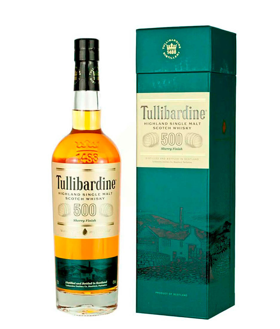 Jednosladová škótska whisky Tullibardine 500 Sherry Finish má všetko, ale nikoho neohúri a najlepšie sa pije čistá alebo „na skalách“. Vôňa tmavej čokolády a korenia sa spája s vôňou hnedého cukru, karamelu a kandizovaných jabĺk. Chuť lahodného single maltu inšpiruje vareným ovocím, škoricovým korením a nádychom Manuka medu, ktorý je obchodnou značkou Tullibardine Whisky. Korenie na pečenie a datle vedú do záveru, ktorý sa prejavuje z dlhej, krémovo jemnej strany. Chutnému záveru dominujú mleté mandle a maslový karamel.