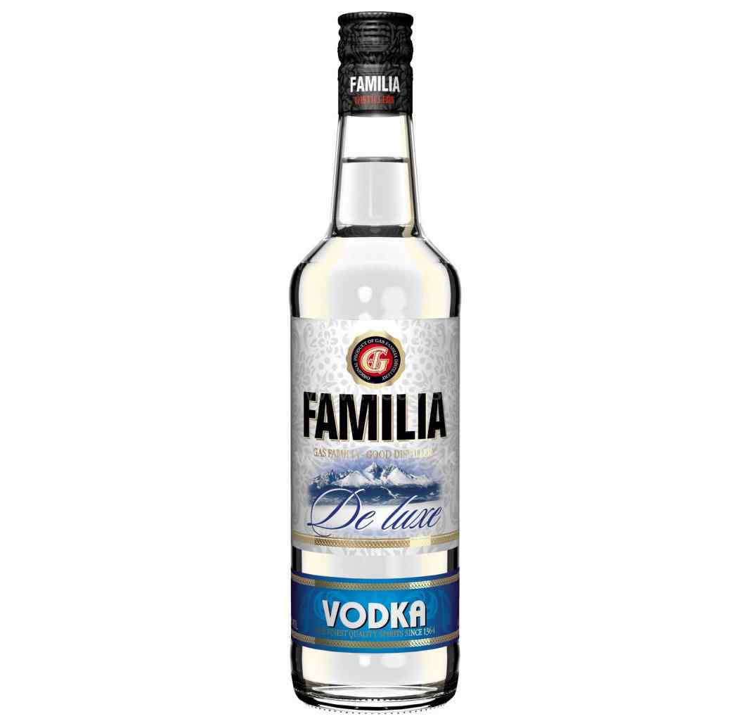 Familia Vodka De Luxe je vyrobená z vysoko kvalitného, rafinovaného alkoholu a demineralizovanej vody. Počas výrobného procesu prechádza filtráciami, čo zaručuje ich vynikajúcu kvalitu a príjemnú neutrálnu chuť. Patrí do kolekcie kvalitných a tradíciou overených nápojov. Viacnásobná destilácia sa vykonáva pomocou špeciálneho procesu čistenia. Slovenský produkt.