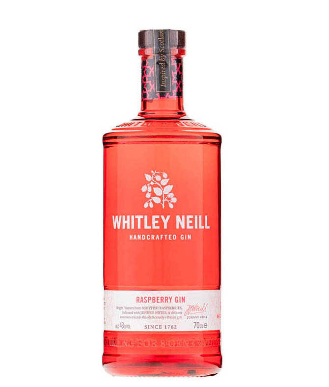 Fantasticky Whitley Neill Raspberry gin, ktorý sa objavil na trhu v roku 2018. Výrazná príchuť borievky, koriandra a sladkého drievka, ktorá ustupuje jasnej, sviežej a žiarivej chuti škótskych malín. Dokonale vyvážený gin s jemnou, ovocnou chuťou a pretrvávajúcou citrusovou, malinovou príchuťou. Lahodné maliny pochádzajúce z Škótska a vyvážené tóny borievky dodajú jemnú sladkosť, ktorá lahodne dopĺňa Whitley Neil Raspberry Gin. Tento neuveriteľný všestranný gin sa dá lahodne spárovať s tonikom a je dokonalou súčasťou kokteilov.