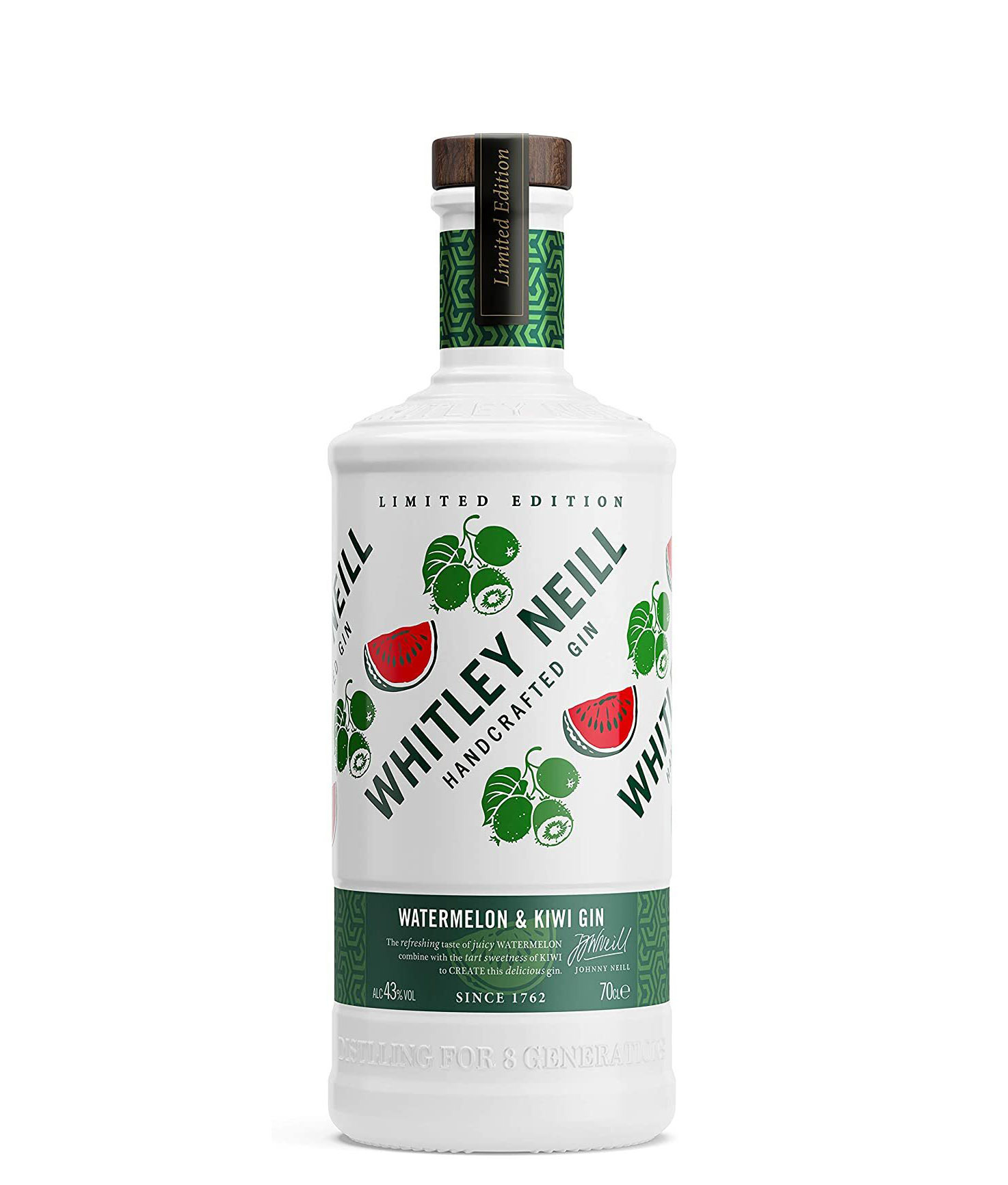 Whitley Neill Watermelon & Kiwi 0,7l 43% je limitovaná edícia anglického ginu. Zmes tropických chutí z kivi a melóna dodá osviežujúce a jemné náznaky leta. Tento gin je inšpirovaný africkým ostrovom Maurícius, po otvorení fľaše chutí ako tropická dovolenka. Osviežujúci a jemný nádych vône a chuti vytvára zmes príchutí tropických príchutí ako kivi, melón, mango.